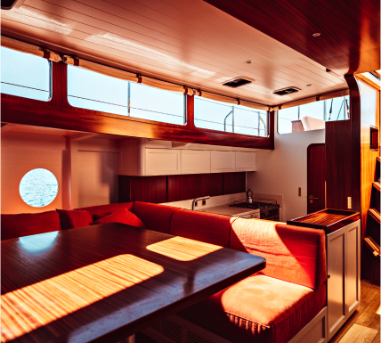 Explorez des intérieurs maritimes méticuleusement conçus, à la fois fonctionnels et émotionnellement prégnants, pour une expérience unique.